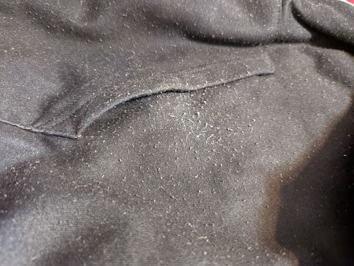 The process of forming firm small balls of lint that form on fabric surfaces, like clothing. This occurs naturally as result of wear and tear on the fibers. These broken fibers get tangled together over time, clumping and forming the pesky lint balls. During the washing process, these fibers can also attract loose micro threads causing process of pilling to be more noticeable. Unfortunately, pilling can occur naturally when certain clothing rubs together (e.g., backpack/purse straps, moving around on couch/seat, rough/textured surfaces, etc.)