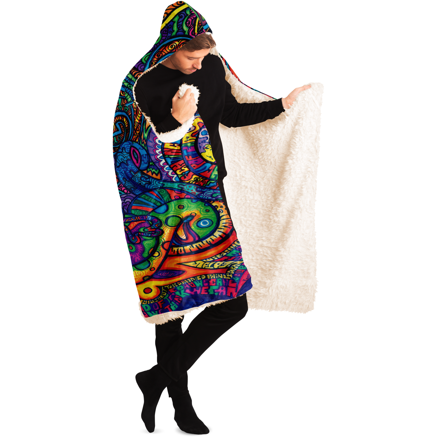 These hooded blankets are crafted from an outer silky smooth 100% Micro-Mink Polyester face. Art will be detailed and vibrant, attracting the gaze from anyone nearby. The inside is lined with a very snuggly choice of either: