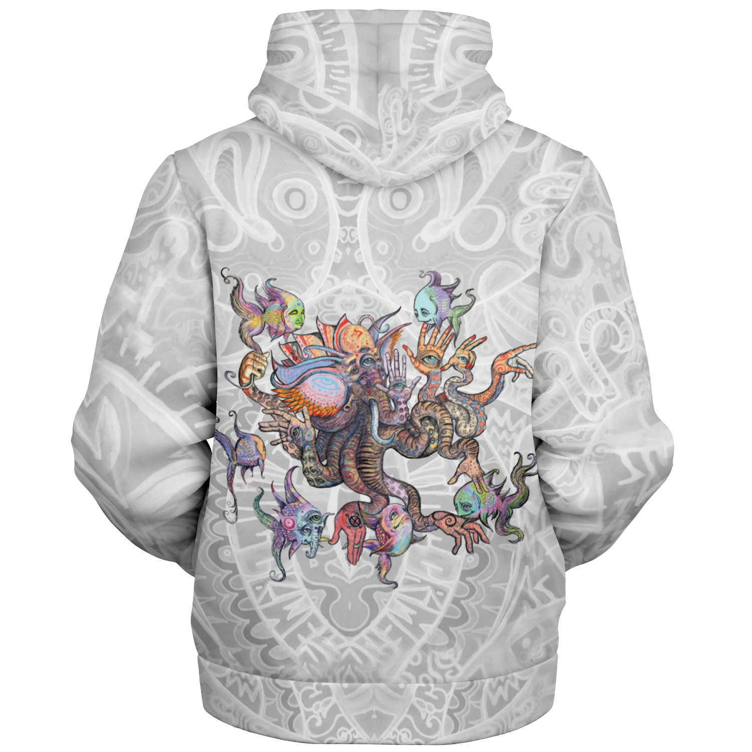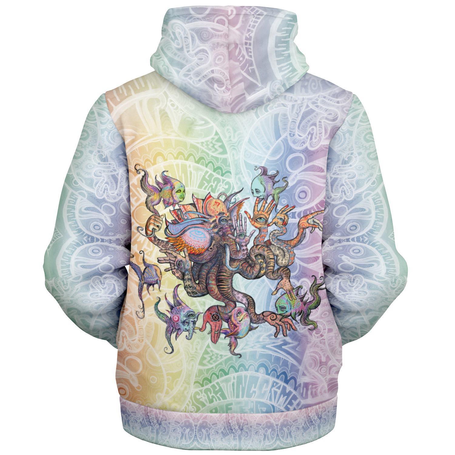 Made from 100% Polyester which is velvetly soft and smooth. Strong durable fabric that will surely show off any chosen Art piece for a long time. Lined with a Microfleece layer for extra comfort and warmth. Ultra soft and smooth to the touch, this layer lines the entire inside of the hoodie. With this liner, overall a medium weight hoodie that is sure to keep you cozy.