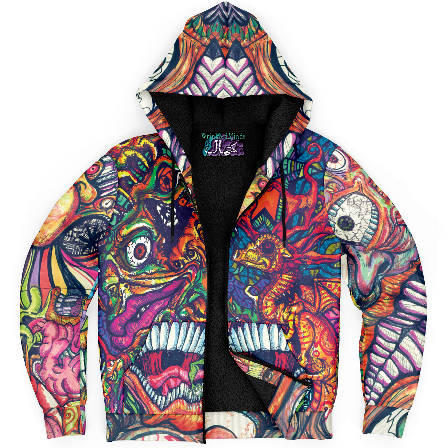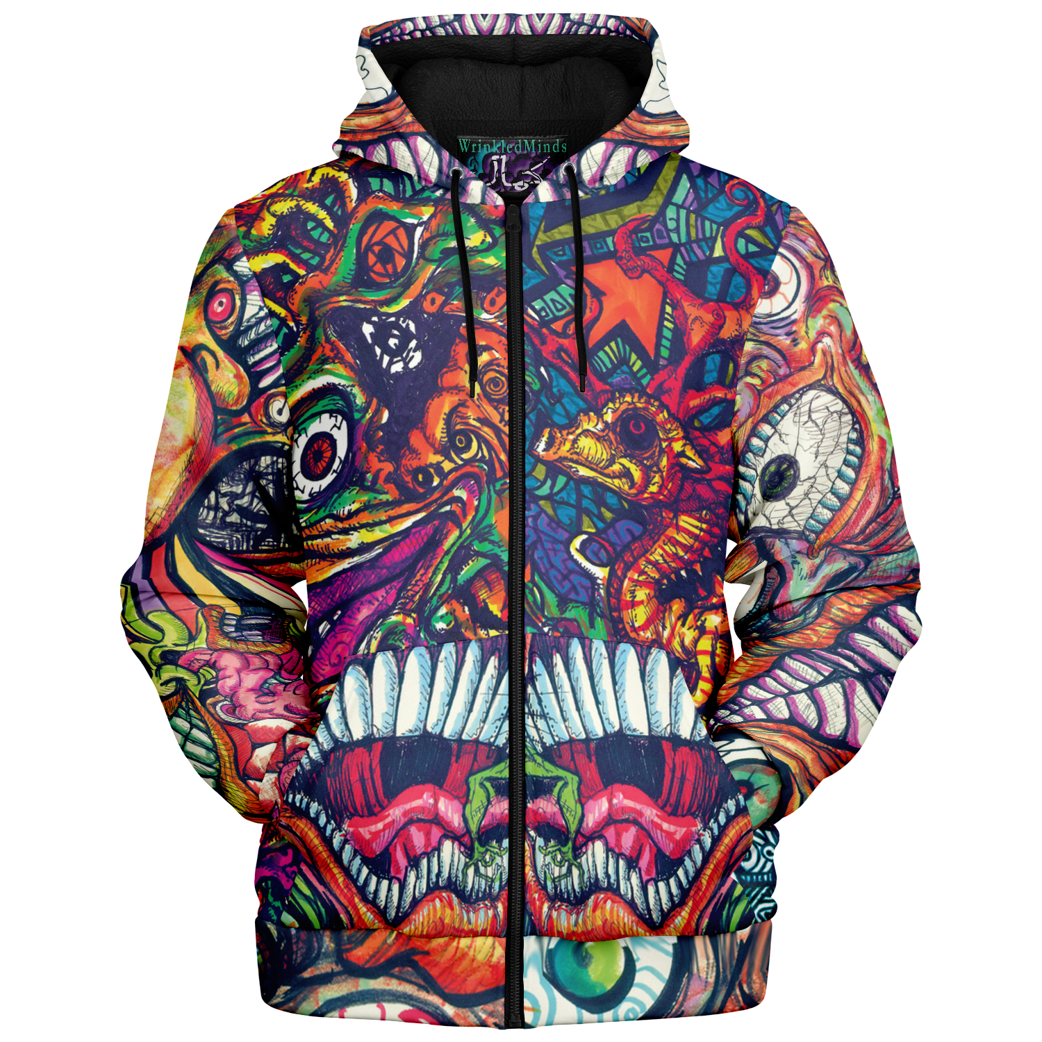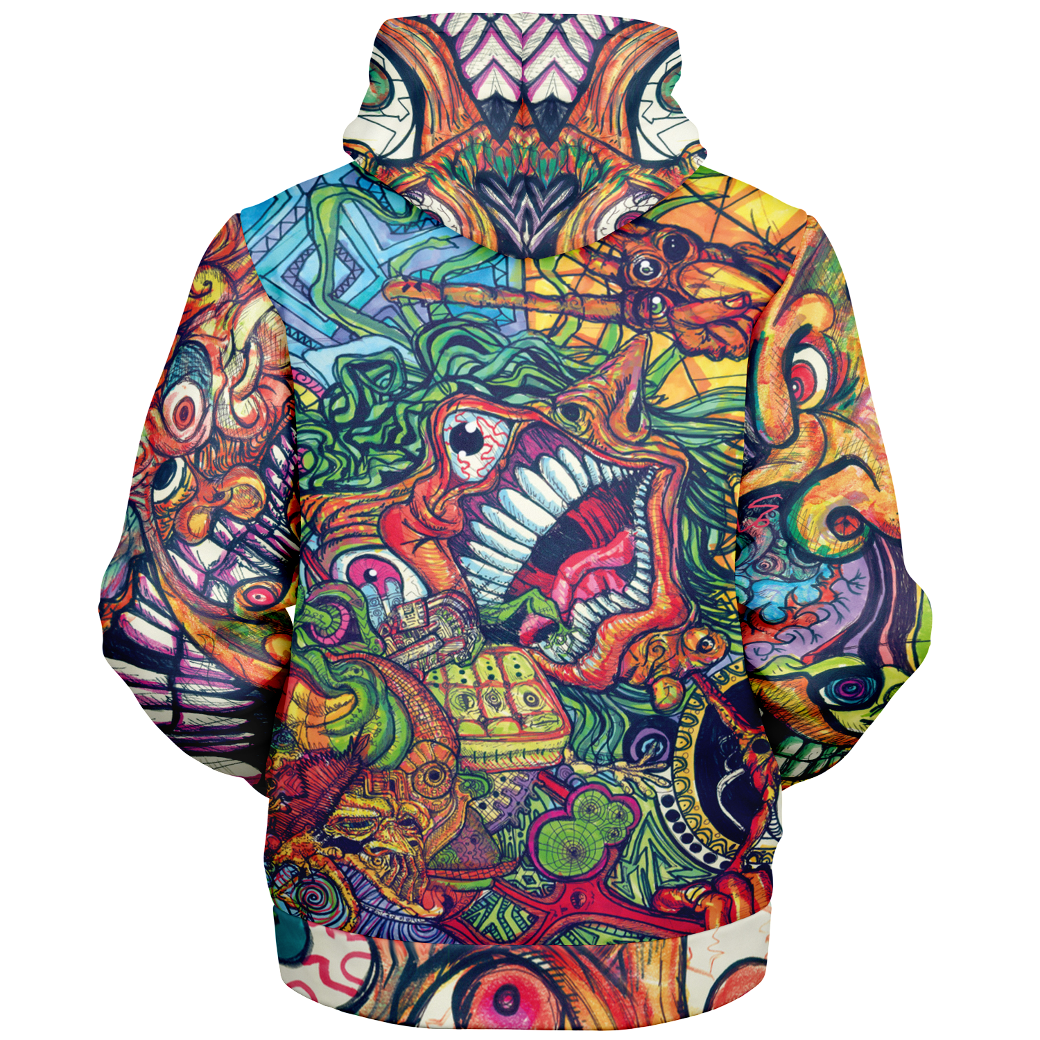 Made from 100% Polyester which is velvetly soft and smooth. Strong durable fabric that will surely show off any chosen Art piece for a long time. Lined with a Microfleece layer for extra comfort and warmth. Ultra soft and smooth to the touch, this layer lines the entire inside of the hoodie. With this liner, overall a medium weight hoodie that is sure to keep you cozy.