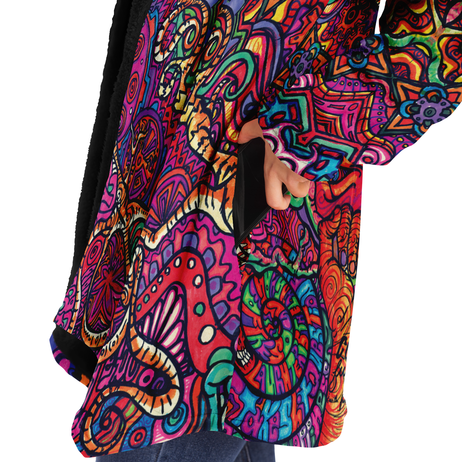 Luxurious Cloaks made with a 100% Micro-Mink Polyester outer layer, giving an incredibly silky soft skin feel. Two deep sided pockets to help keep hands warm. A wonderful layer of Premium Microfiber Fleece will keep you snug and cozy. This semi-plush fleece is ultra-soft feeling, that lines the entire inside! Any art piece will stand out on this unique garment.