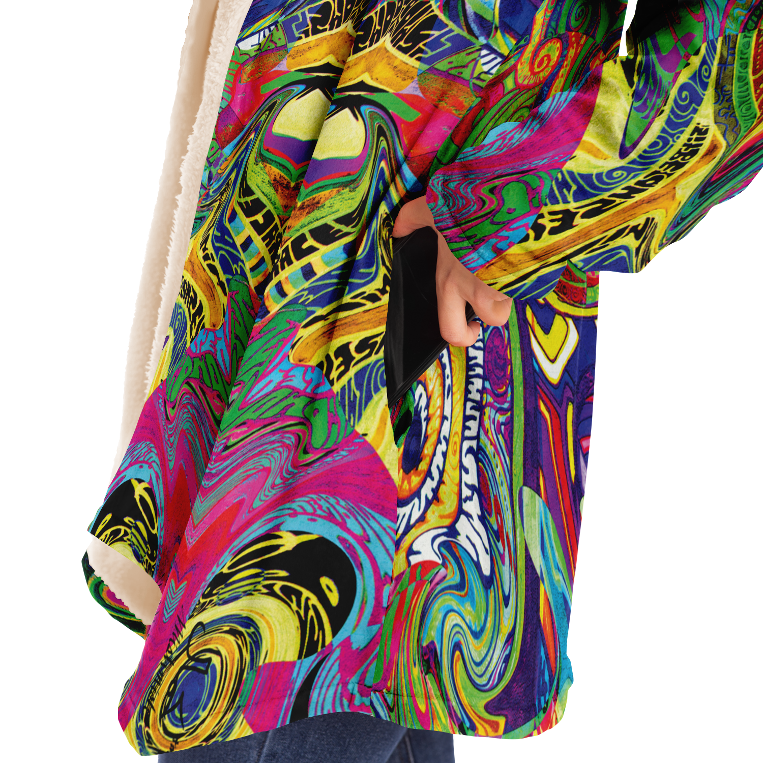 Luxurious Cloaks made with a 100% Micro-Mink Polyester outer layer, giving an incredibly silky soft skin feel. Two deep sided pockets to help keep hands warm. A wonderful layer of Premium Microfiber Fleece will keep you snug and cozy. This semi-plush fleece is ultra-soft feeling, that lines the entire inside! Any art piece will stand out on this unique garment.
